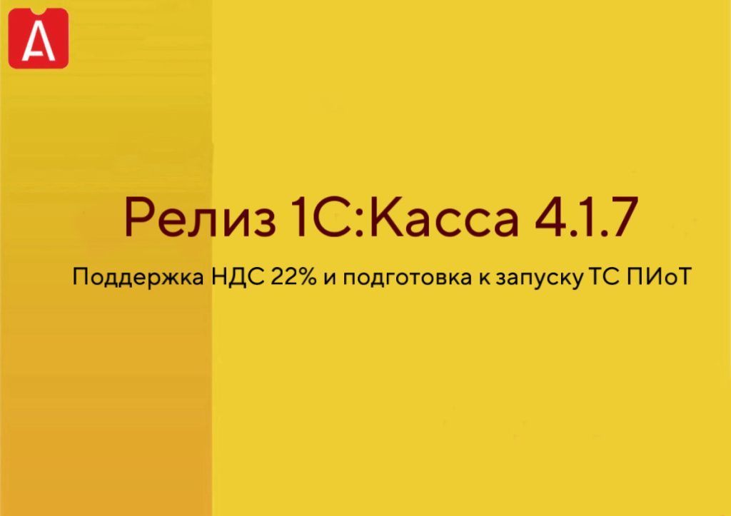 Релиз 1С:Касса 4.1.7. Поддержка НДС 22% и подготовка к запуску ТС ПИоТ